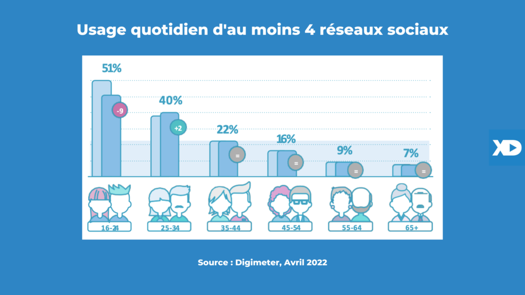 ✔️ Usage quotidien d’au moins 4 réseaux sociaux