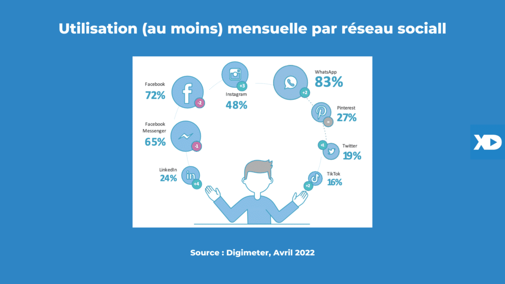✔️ Utilisation (au moins) mensuelle par réseau social