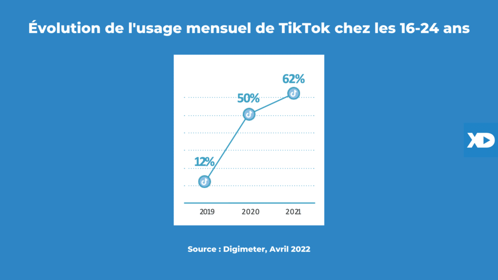 ✔️ Évolution de l’usage mensuel de TikTok chez les 16-24 ans