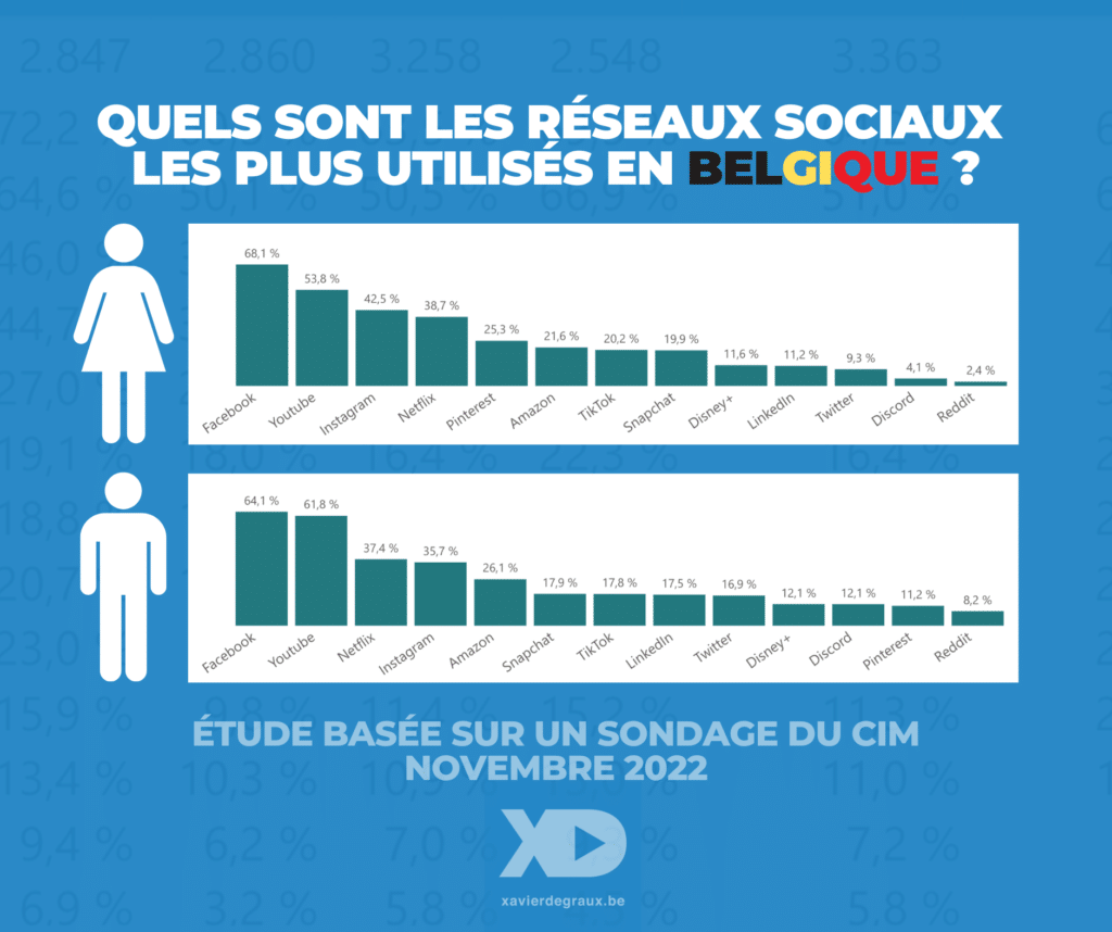 Réseaux sociaux les plus utilisés en Belgique étude CIM Degraux 2023