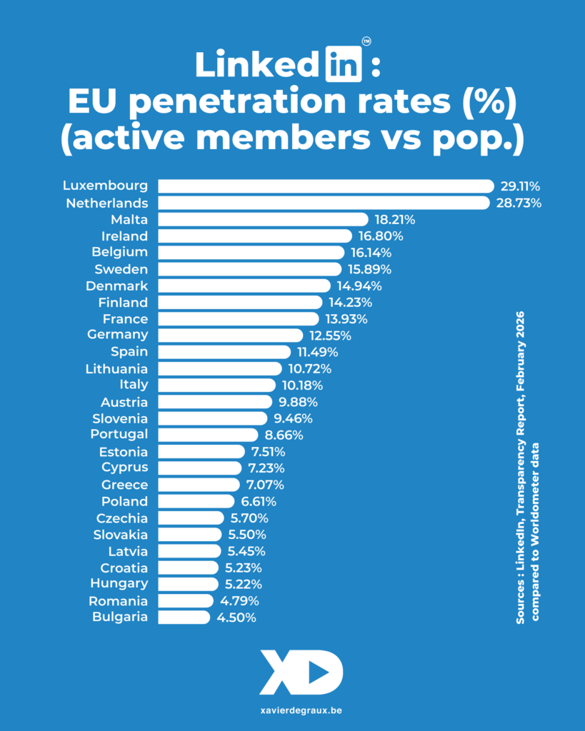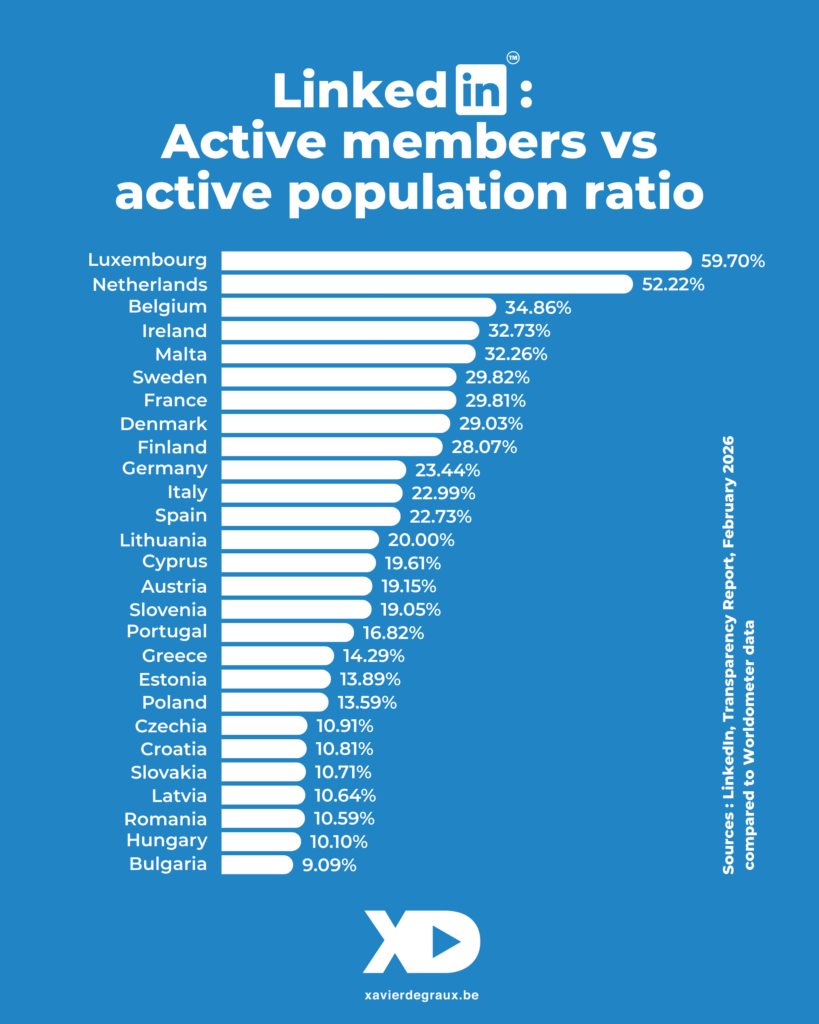 C’est d’ailleurs là, dans les ratios nationaux, que je m’amuse toujours autant à calculer, que se situe l’autre enseignement majeur de la déclaration de transparence de février 2026 de LinkedIn.