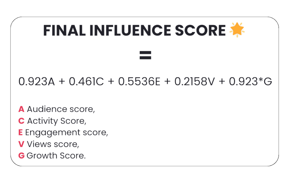 « Notre méthodologie repose sur un système de centiles qui divise les données en 100 parties égales, m’a expliqué Favibot, le robot conversationnel de Favikon. Voici les poids précis pour l’Influence Score :