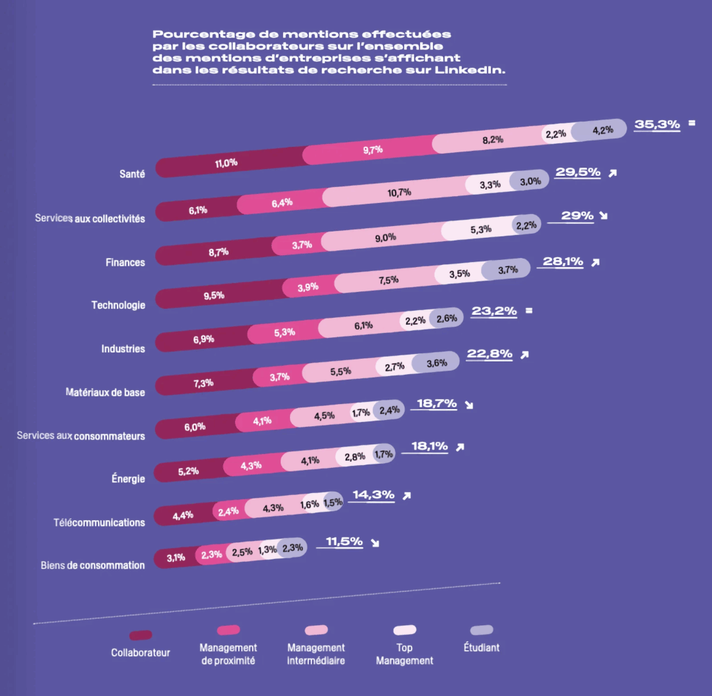 Autrement dit: les collaborateurs s’expriment beaucoup moins sur LinkedIn au sujet de leur employeur, et ce, quel que soit le secteur.