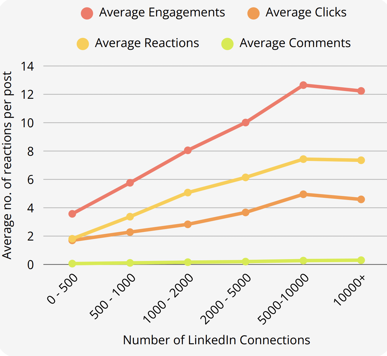Une autre leçon importante de cette étude est que les employés avec des réseaux LinkedIn de taille « moyenne » (entre 5 et 10.000 connexions tout de même) obtiennent plus d’engagement que ceux qui ont un réseau très large (plus de 10.000 connexions).