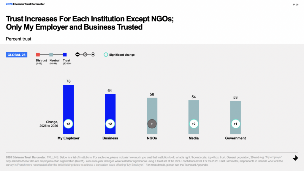 Le rapport Edelman 2026 identifie une attente inédite pour les comités de direction. Les dirigeants et les dirigeantes héritent d’un rôle de médiateur de confiance. Un « Trust Broker ».