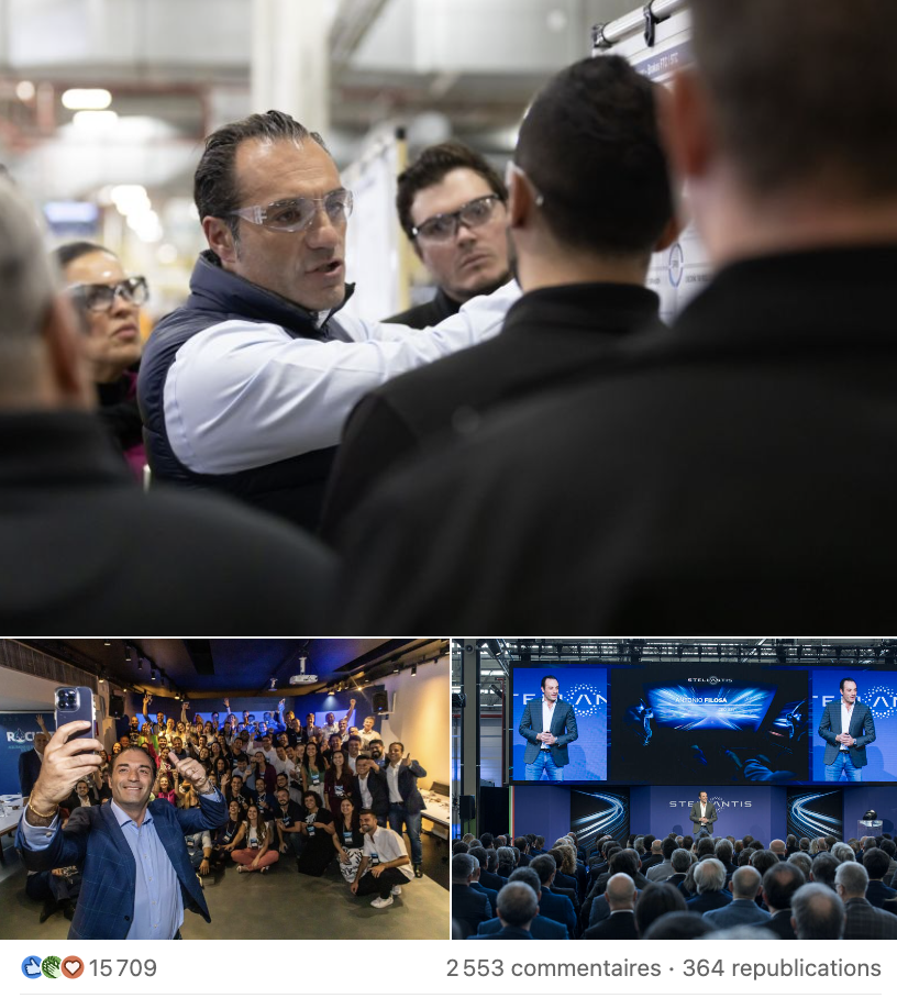 Le cas d’Antonio Filosa (CEO, Stellantis) est exemplaire. Leader du classement d’impact et numéro 2 du Top 40 de l’engagement en 2025, il a trouvé une « patte » unique. Sa méthode ? Documenter son tour des usines. On le voit auprès de ses équipes, casqué, lunettes de protection sur le nez, capturant des moments sur le vif. Cette proximité renforce l’image d’un dirigeant aussi à l’aise en Comex qu’avec ses techniciens.