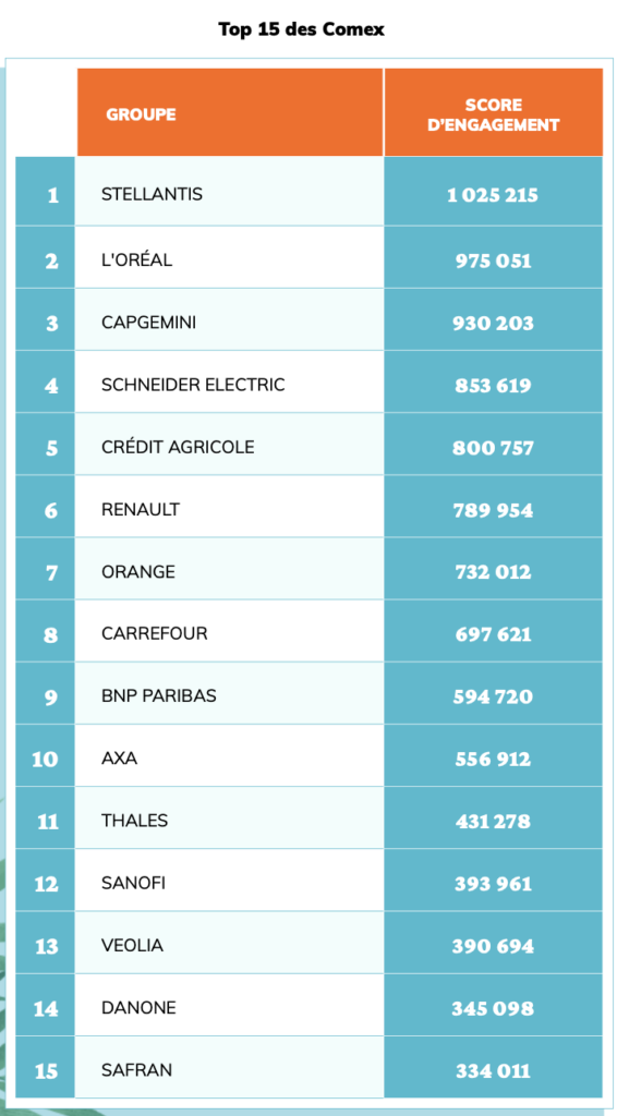 L’étude révèle que les scores d’engagement cumulés des Comex sont fortement influencés par un petit nombre de dirigeants actifs, ce qui dilue l’effet de taille.
