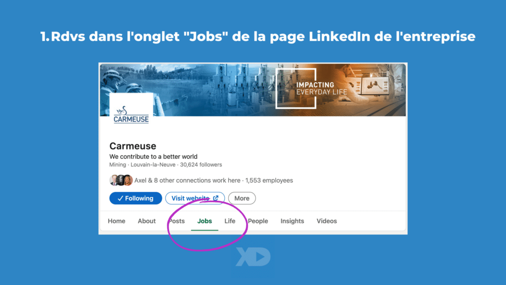 1. Rdvs dans l’onglet « Jobs » de la page LinkedIn de l’entreprise