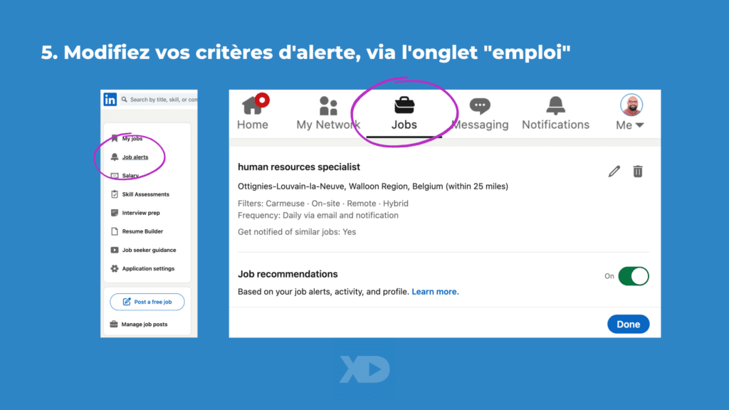 5. Modifiez vos critères d’alerte, via l’onglet « emploi »
