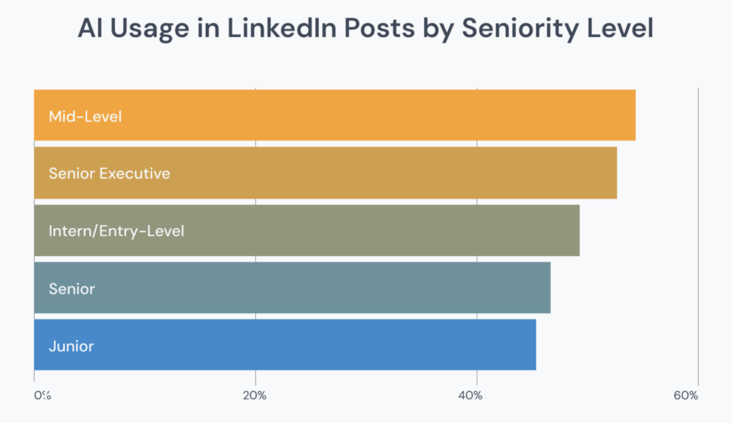Les cadres intermédiaires sont les premiers à tomber dans le panneau avec un taux d’adoption de 54,4%. Ils subissent une pression dingue pour exister en ligne et prouver leur progression de carrière. Ils n’ont pas le temps. Du coup, ils délèguent leur plume à un algorithme. Ils pensent gagner en efficacité. En fait, ils deviennent interchangeables.