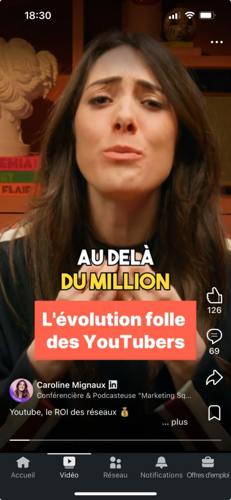 Avec l’apparition puis la disparition de l’onglet « Vidéos » et son flux vertical, LinkedIn a tenté d’assumer sa « TikTokisation ». Le format vidéo a été poussé artificiellement par l’algorithme.