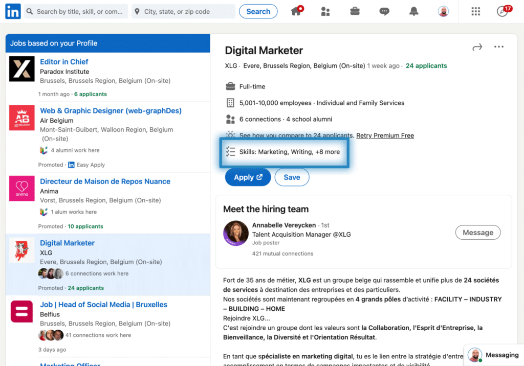 Vous aurez d’ailleurs peut-être remarqué que LinkedIn vient d’ajouter, dans les offres d’emploi, un champ « Compétences » cliquable.