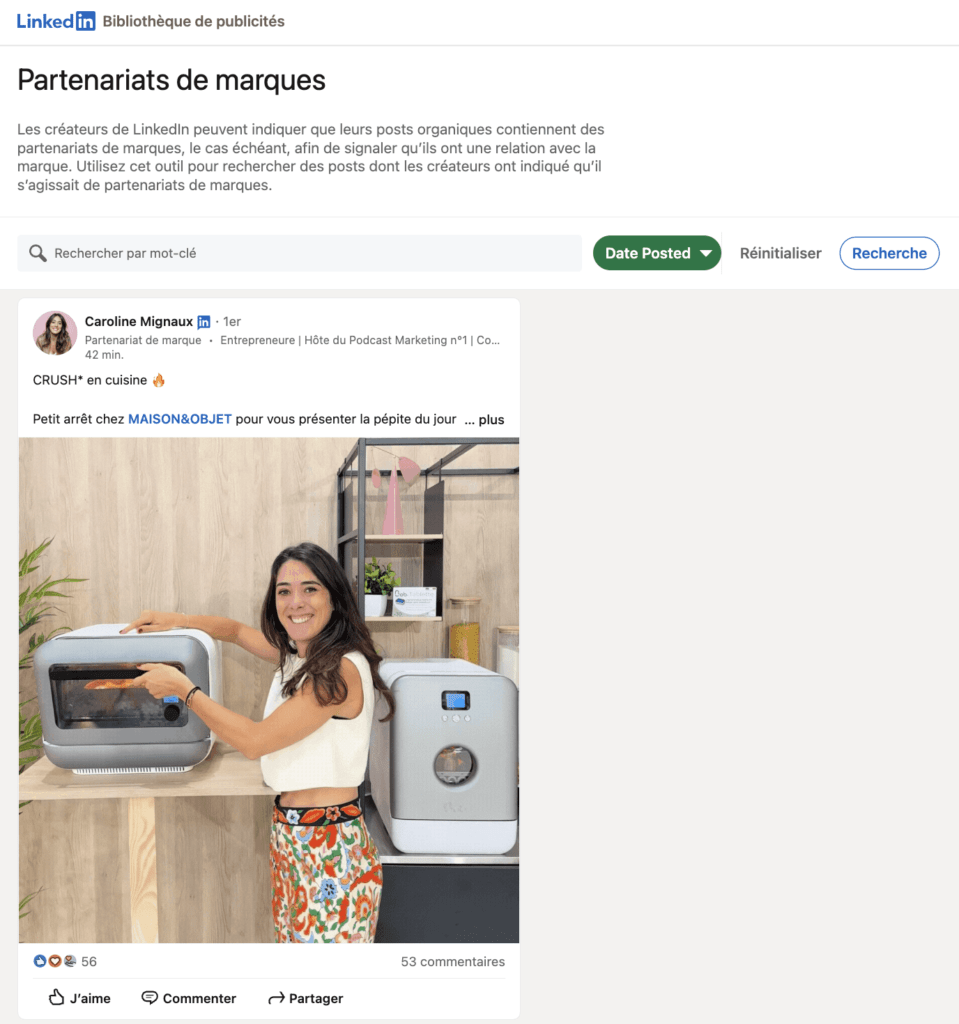 Enfin, il est impossible, à ce stade, de lancer de grandes études comparatives, la platefome n’agrégeant les publicités que depuis juin 2023. Et les publicités ne restant dans la médiathèque que pendant un an après leur dernière impression sur LinkedIn.