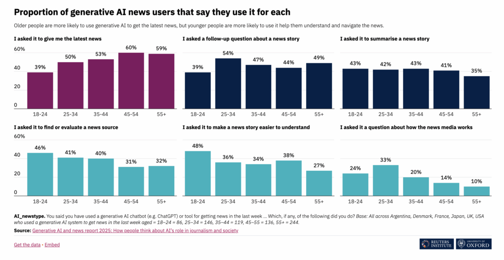 Et à mesure que les contenus synthétiques se multiplient, les publics risquent de s’épuiser face à l’incertitude de ce qu’ils lisent. comme l’a bien montré un rapport du Tinius Trust intitulé AI in Journalism Futures 2025, qui décrit une « fatigue du réel », née de l’impossibilité de distinguer ce qui est vérifié de ce qui est généré. Ce qui pourrait devenir l’un des effets secondaires les plus profonds de l’IA dans l’information.