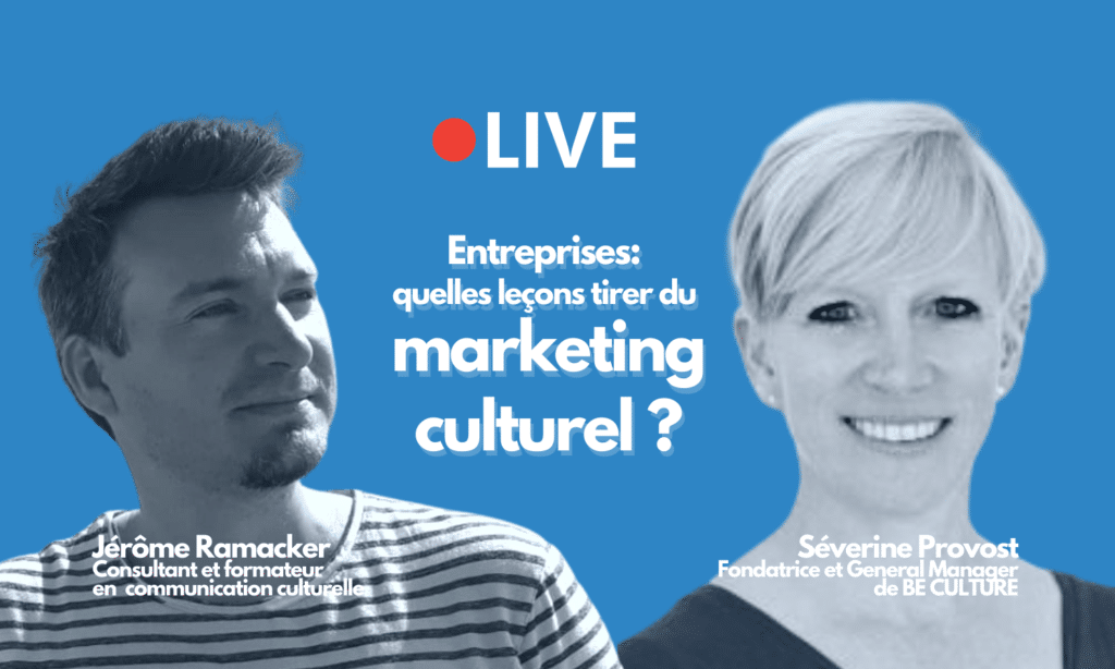 (Re)vivez le 🔴 LIVE « Marketing culturel : quelles leçons pour les entreprises ? » avec quelques bribes (satanés réseaux !) de Séverine Provost, fondatrice et general manager de BE CULTURE, et ‘l’artisan communicateur’ Jérôme Ramacker, formateur et consultant en communication culturelle.