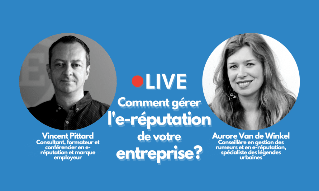 Revivez le live « 🔴 Comment gérer l’e-réputation de votre entreprise ?« , avec Aurore Van de Winkel (conseillère en gestion des rumeurs et e-réputation) et Vincent Pittard (formateur et conférencier en e-réputation et marque employeur).