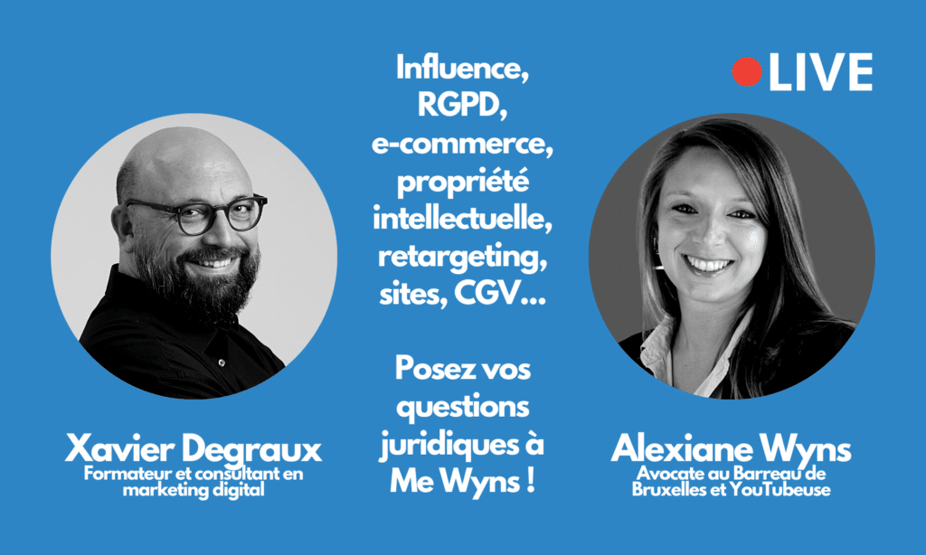 Avec Alexiane Wyns, avocate au Barreau de Bruxelles et YouTubeuse, à propos de RGPD, droit à l’image, CGV…