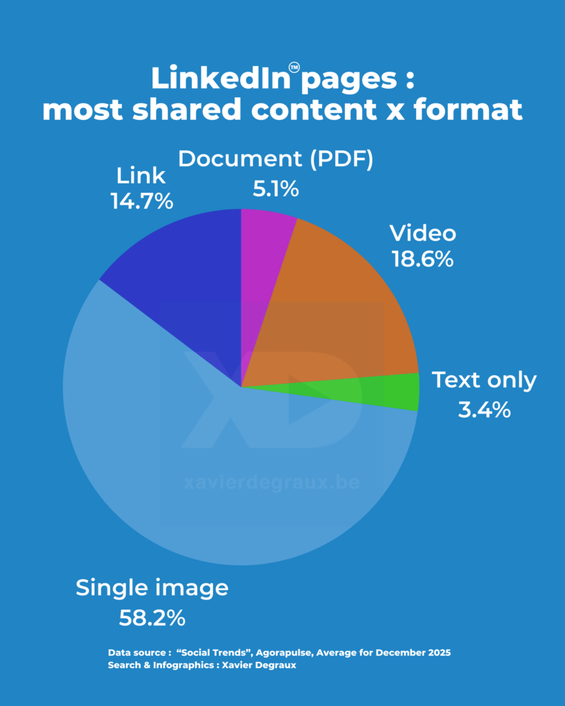 Très très progressivement, le classement des formats les plus engageants publiés par les pages LinkedIn contraste un peu moins avec l’usage observé. Les bonnes pratiques s’installent… tout doucement.