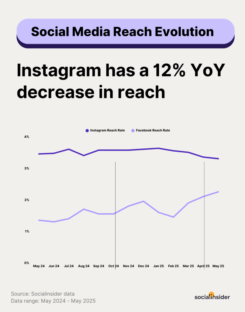 Sur Instagram, par exemple, Socialinsider, qui la mesure à environ 3,2% (contre 2% sur Facebook environ), estime que la chute est de 12% sur un an.