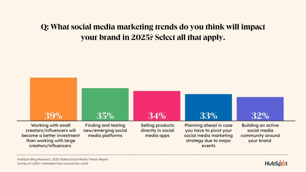 Côté pro, on confirme : d’après Hubspot, 34% des marketeurs interrogés par Hubspot estiment que la vente de produits directement au sein des applications sociales deviendra plus essentielle cette année.