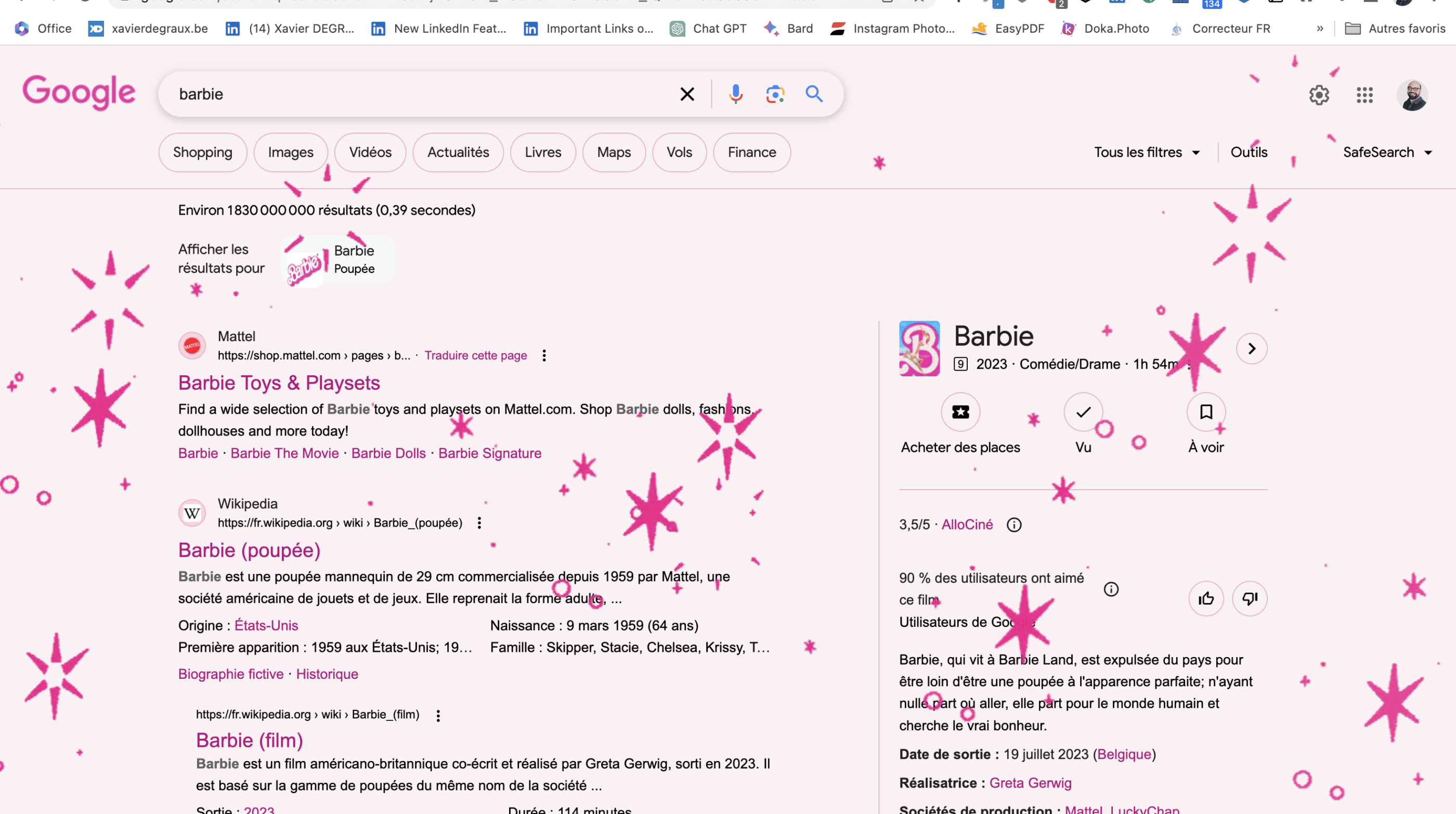 Sans parler des initiatives de dernière minute, (probablement) non contractualisées, comme celle de Google (tapez « barbie » dans la barre de recherche…).