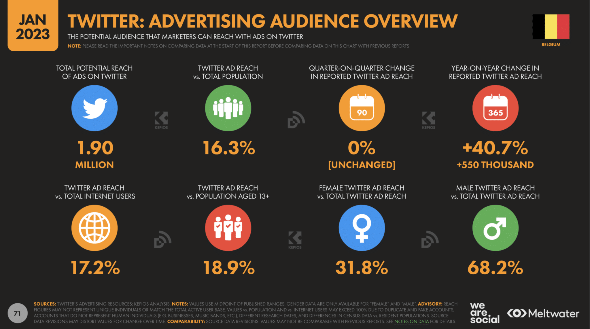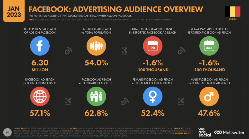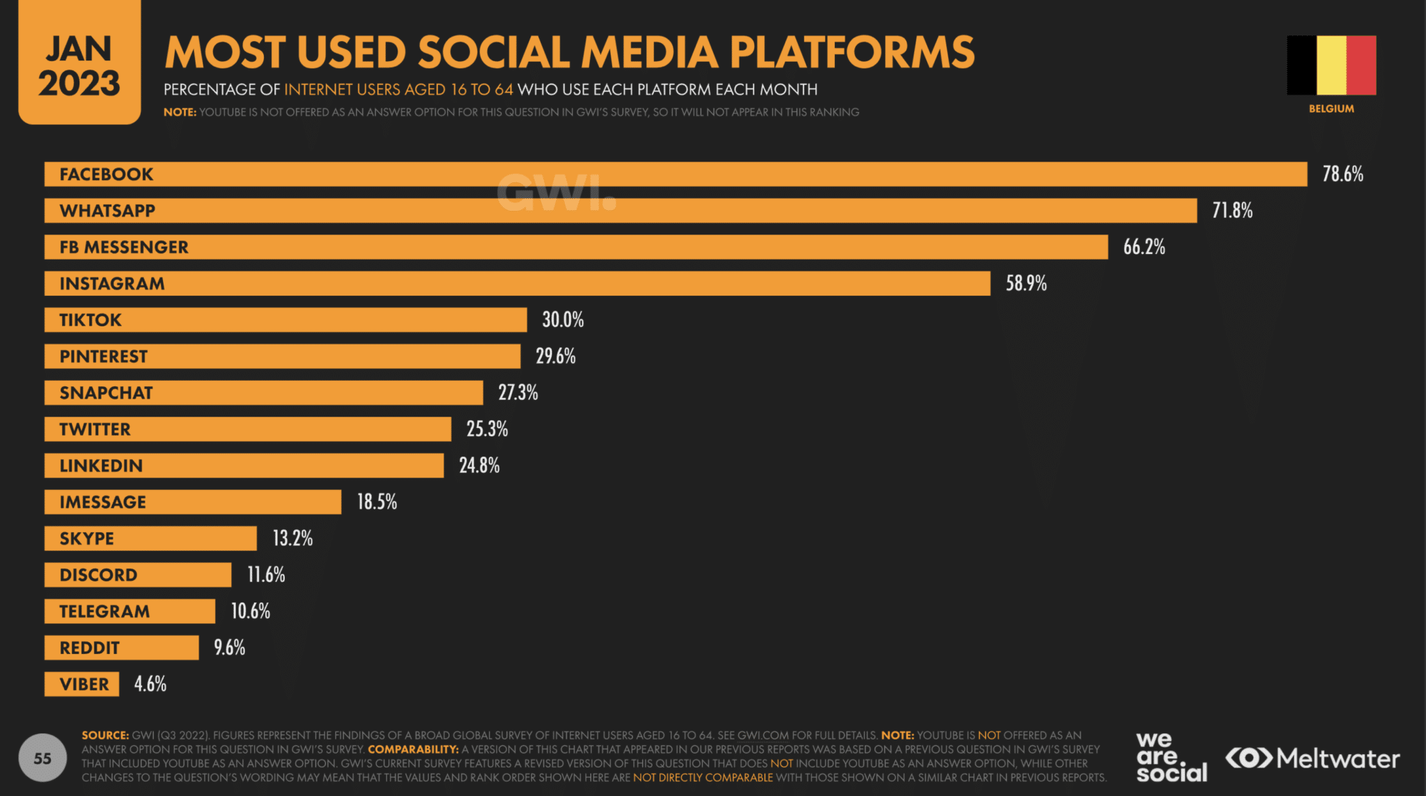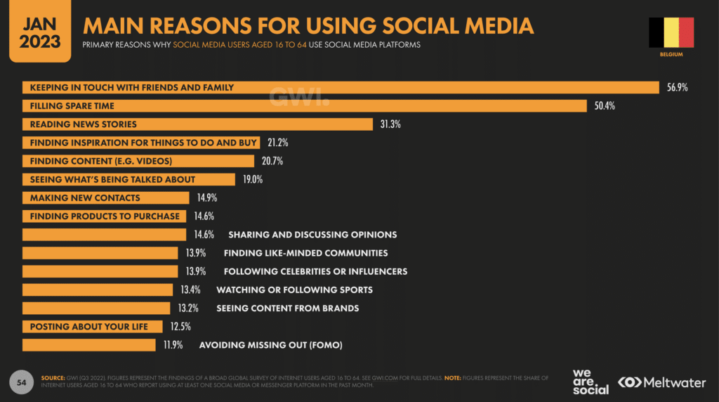 Découvrez les statistiques belges de l’étude 2023 de Kepios / We Are Social / Meltwater sur les réseaux sociaux (Facebook, Instagram, TikTok, Twitter…) !