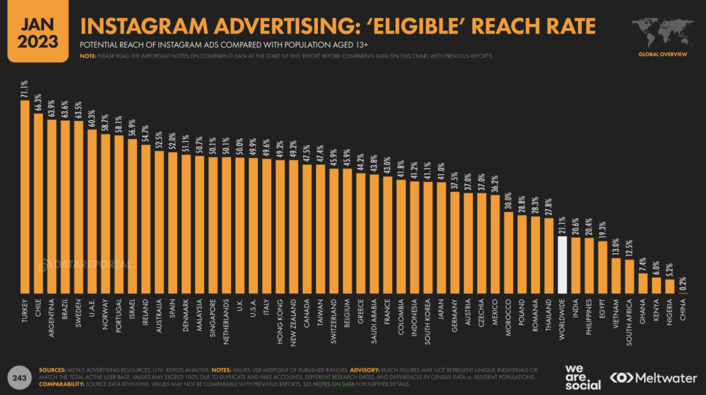 Le taux de pénétration d’Instagram chez les 13 ans et plus atteint désormais, en France, les 43%… alors qu’il était de 47,6% douze mois plus tôt.