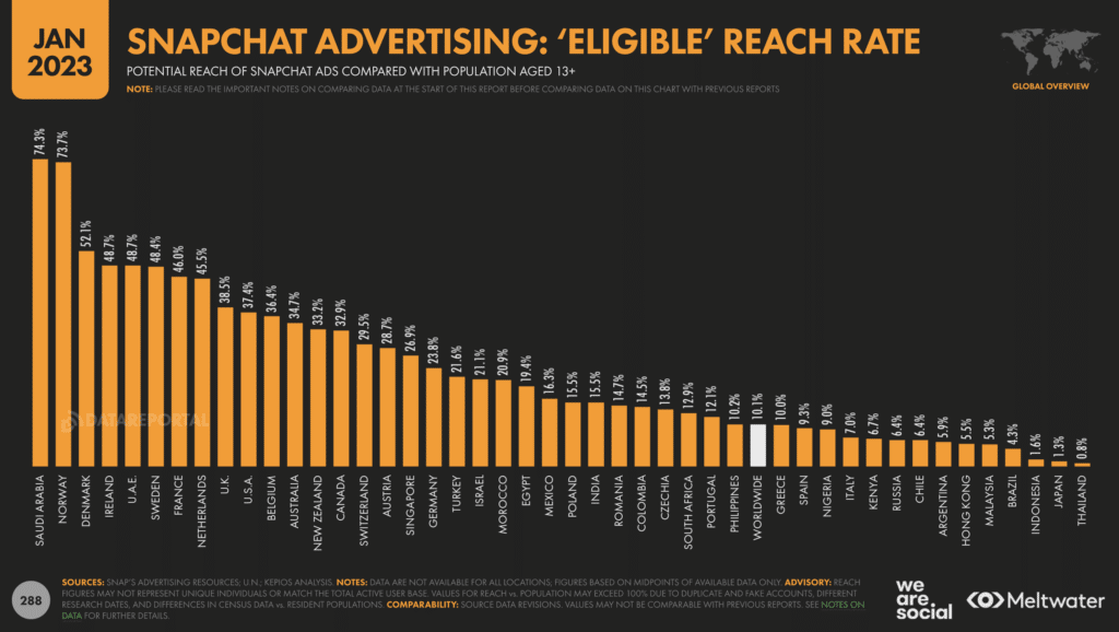 Snapchat revendique désormais une présence dans la vie de 46% des Français.es de plus de 13 ans (vs 43,4% en janvier 2022).