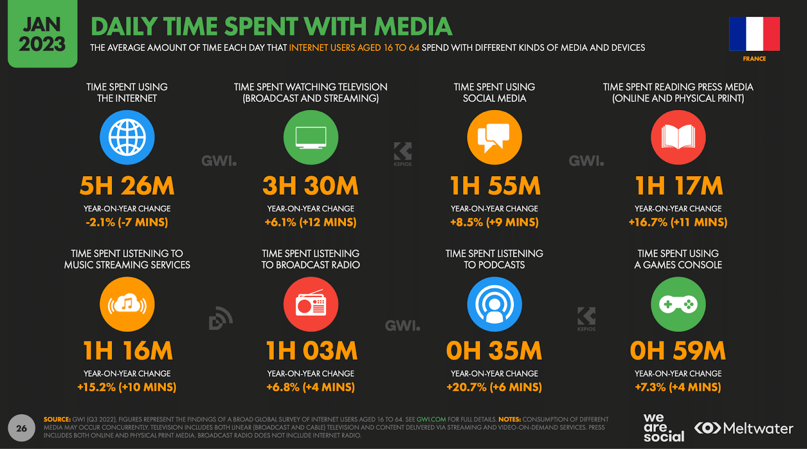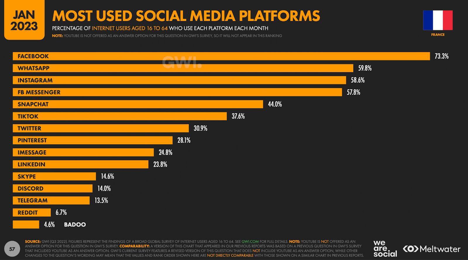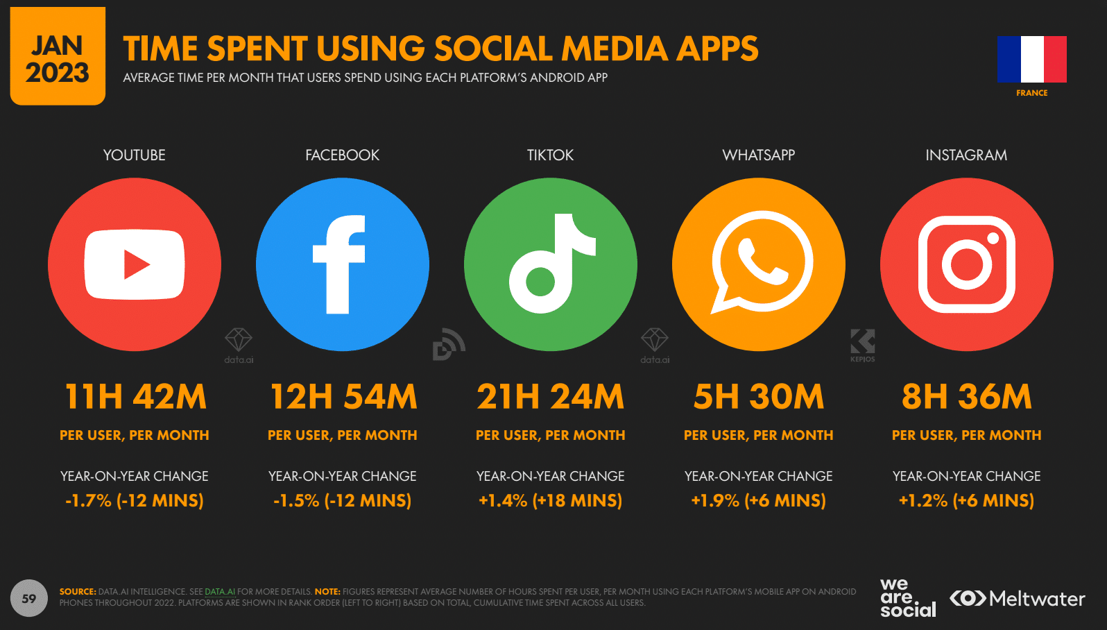 Découvrez les statistiques française de l’étude 2023 de We Are Social / Meltwater sur les réseaux sociaux (Facebook, Instagram, TikTok, Twitter…) !