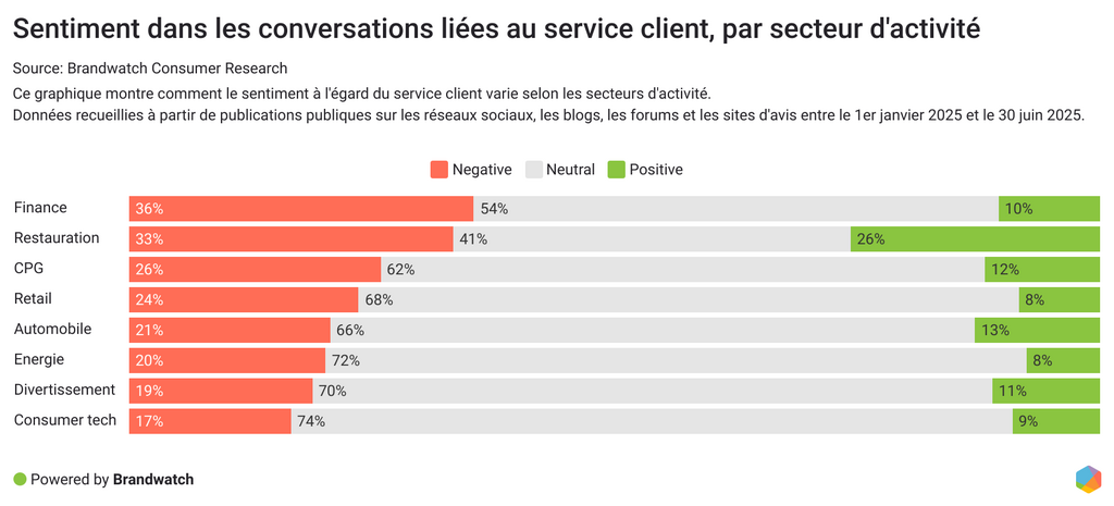 Le sentiment repéré dans les conversations liées au service client sont largement négatives, elles aussi.
