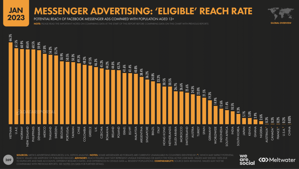 Opmerkelijk is dat de top vier bestaat uit de vier Meta-groepsplatforms (Facebook, Whatsapp, Messenger en Instagram).