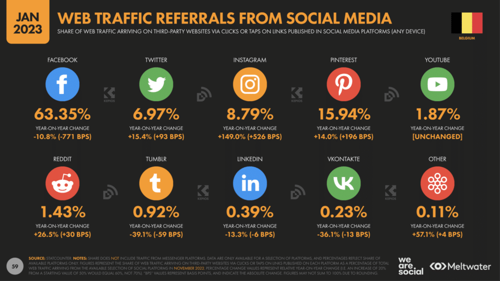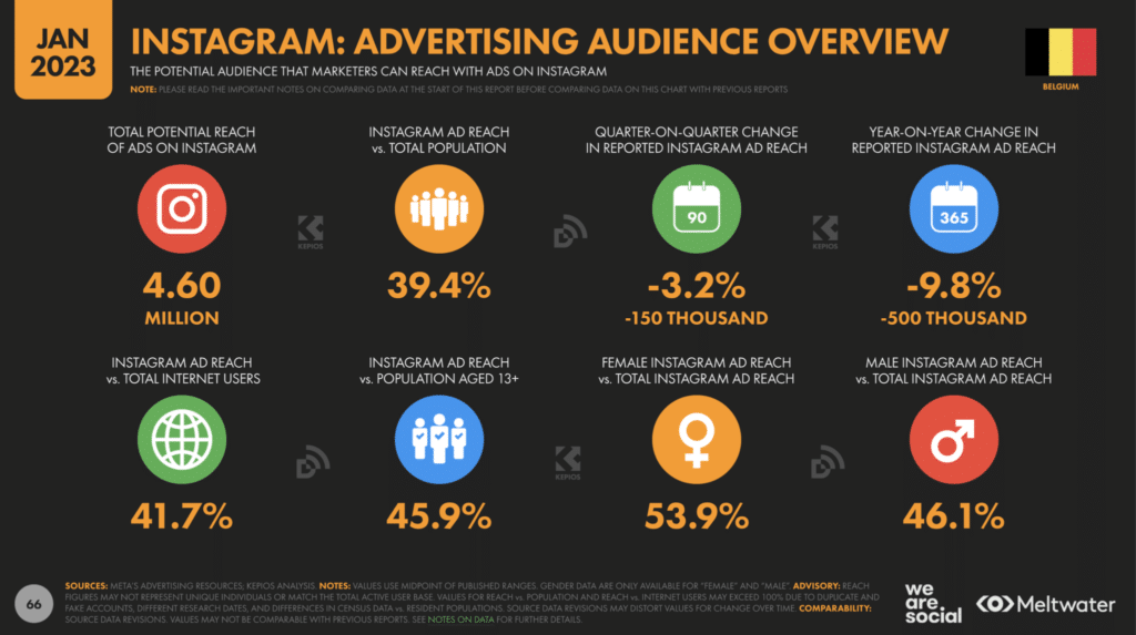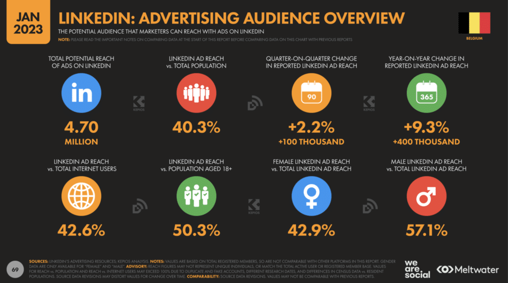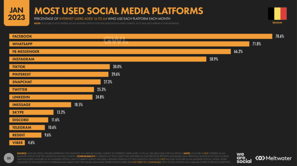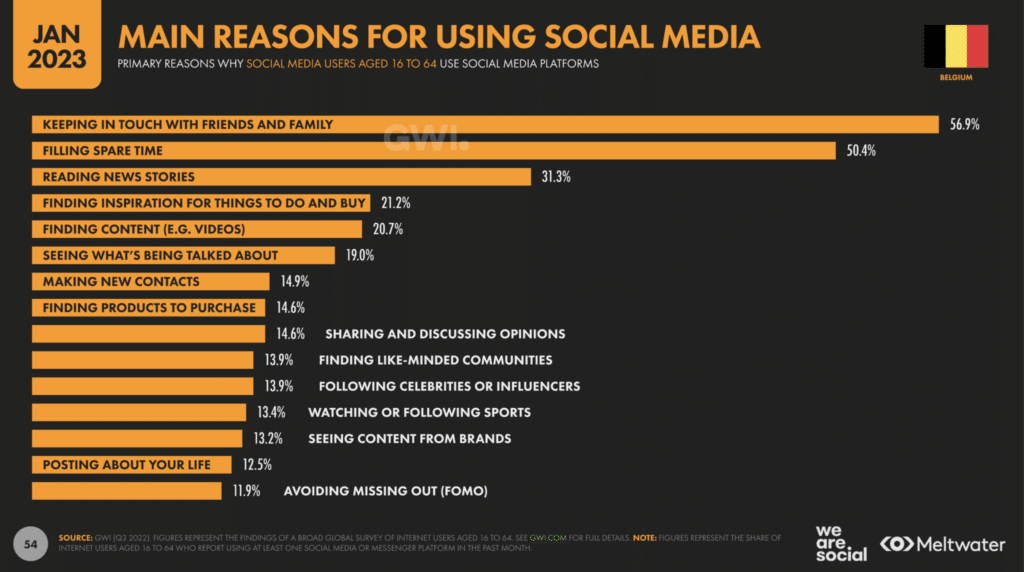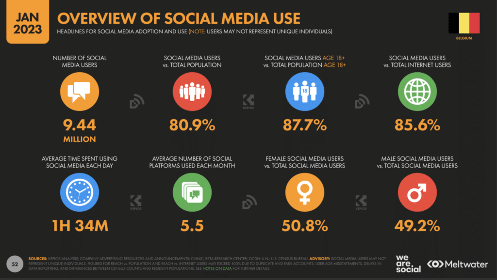 Ontdek de Belgische statistieken van de 2023 studie van Kepios / We Are Social / Meltwater op sociale netwerken (Facebook, Instagram, TikTok, Twitter…)!