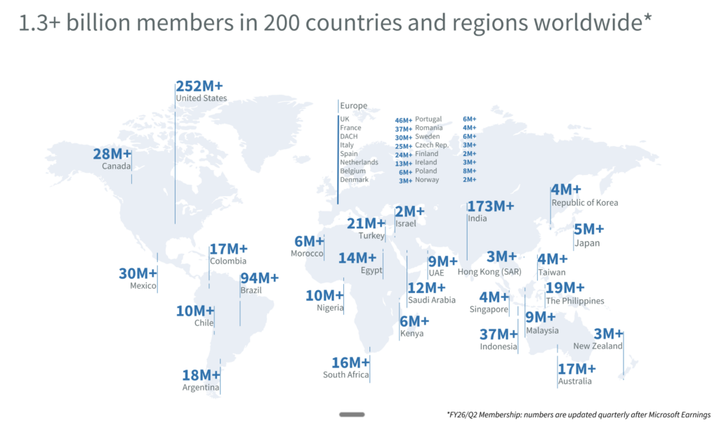 - D’après la partie du site dédiée à la presse, LinkedIn compte « 1,3+ » milliard de membres, dont « 37M+ » en France