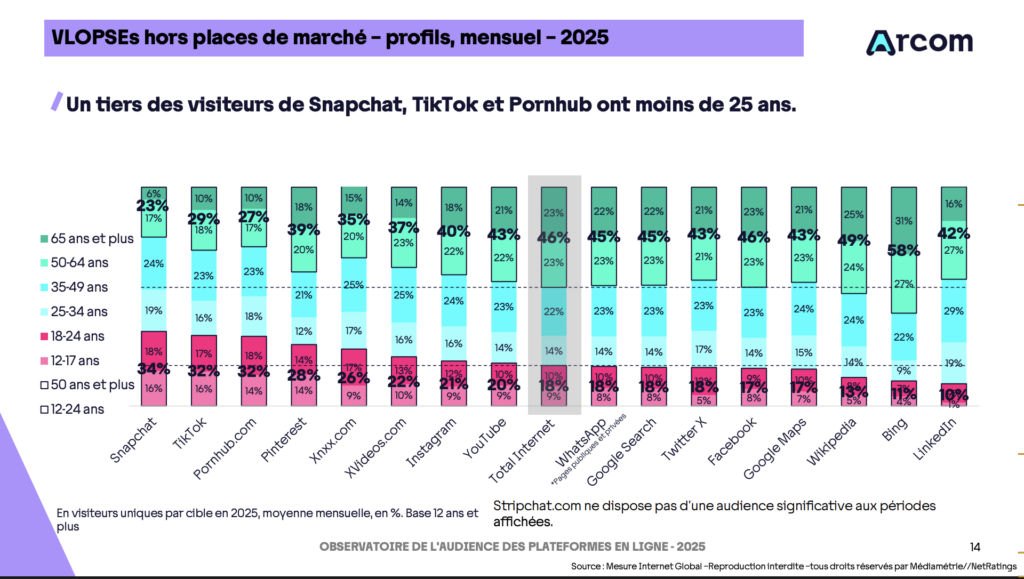- Les 12-17 ans ne représentent que 1% de l’audience (-71% par rapport à 2022)